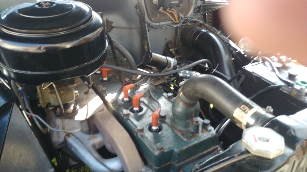 Ensemble moteur et boite d'origine, moteur 6 cylindres à tête plate de 3926 cm3 / 239.6 cui et 96 HP, boîte manuelle à trois vitesses.