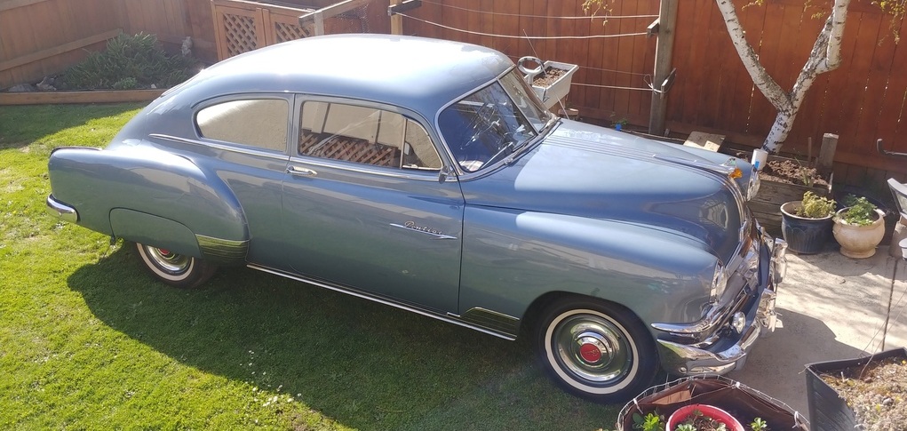 Prestige Car Factory vous présente cette belle 1951 Pontiac Chieftain Deluxe Fastback, une voiture très peu produite et peu disponible avec cette carrosserie.
