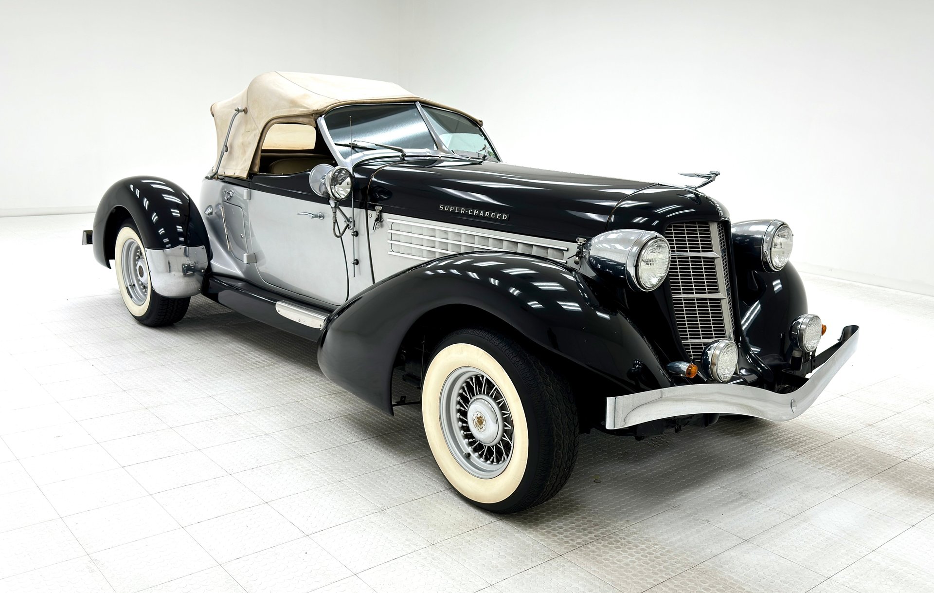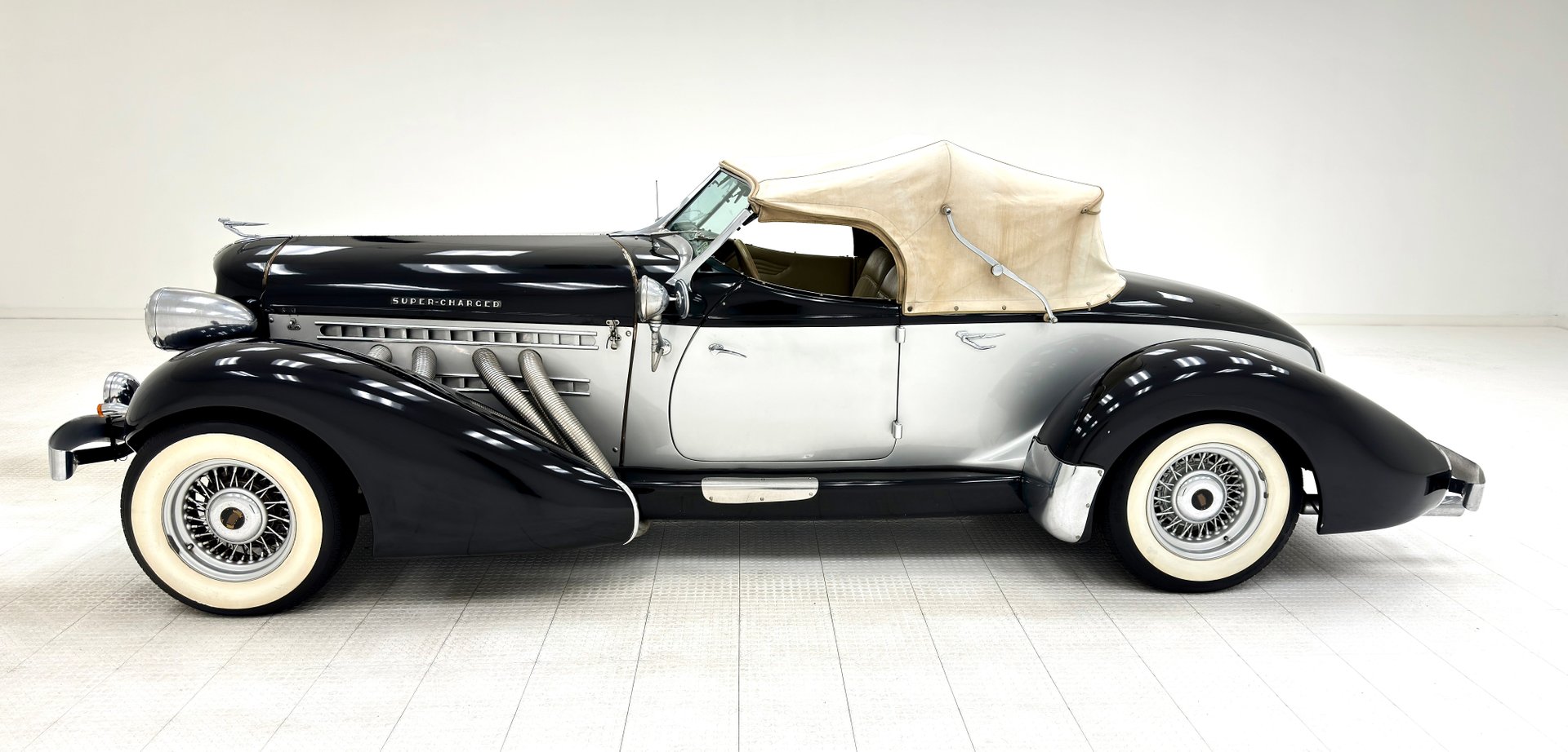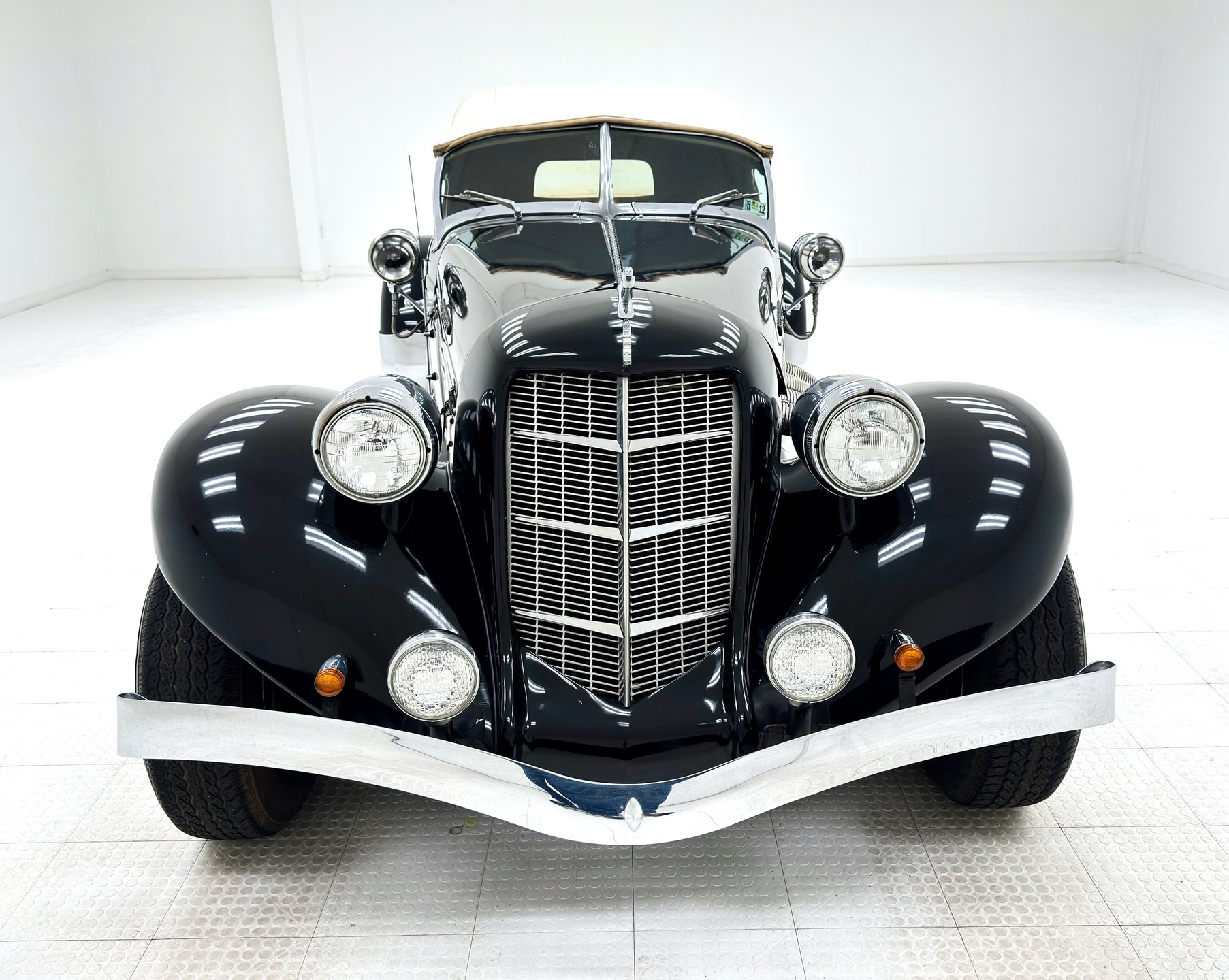 Les modèles originaux étaient révolutionnaires et « certifiés » par Auburn pour atteindre « 160 km/h ou plus ». Cette réplique avec coque en fibre de verre est une reproduction fidèle de cette voiture américaine mythique, prisée par des stars telles que Lana Turner, Barbara Hutton, Clark Gable ou Gary Cooper.